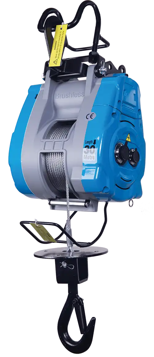 Brushless hoists have increased efficiency with no carbon brushes to add friction losses and to wear out.